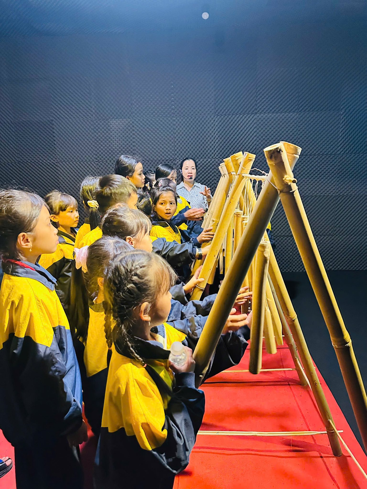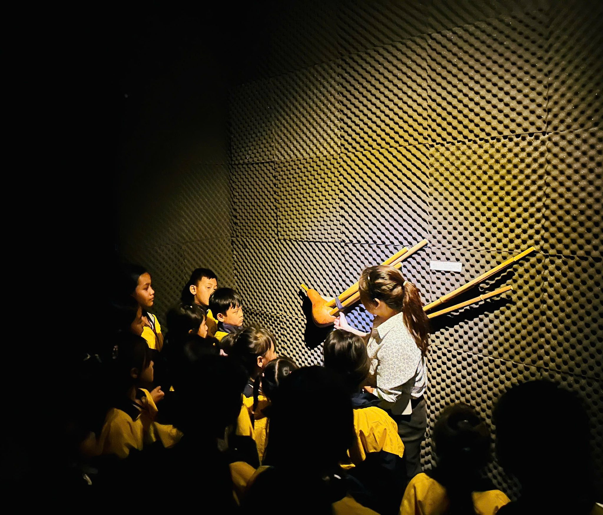 Không gian triển lãm mang đến cho các em những trải nghiệm sinh động qua âm thanh lịch sử, giúp lịch sử trở nên gần gũi, dễ hiểu, khơi dậy sự tò mò, ham học hỏi và niềm say mê tìm hiểu truyền thống quê hương, đất nước.